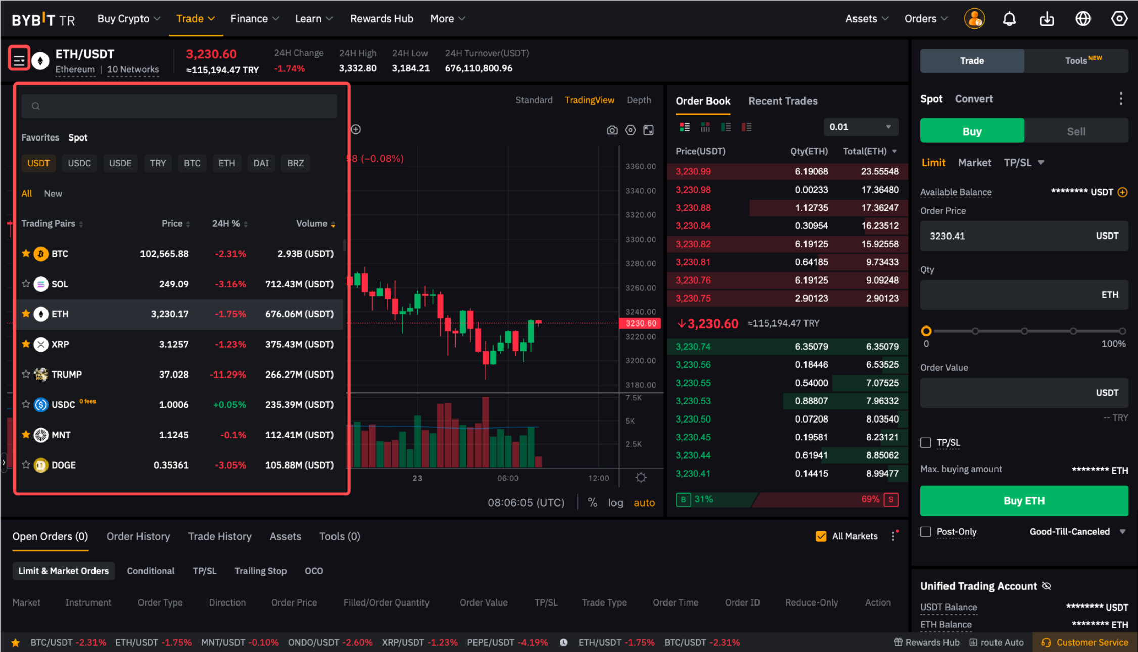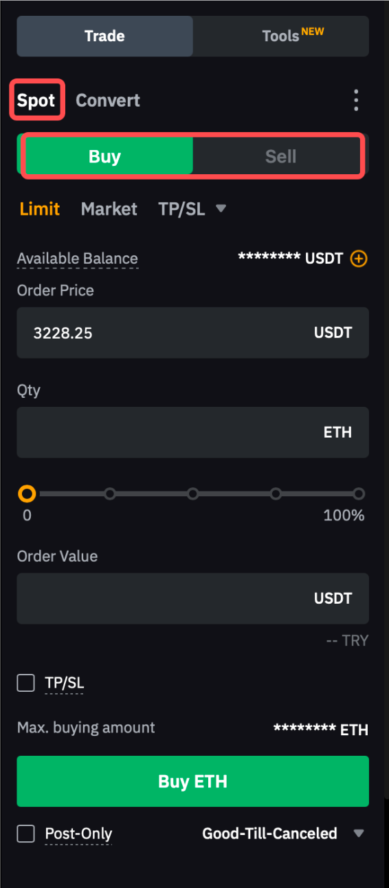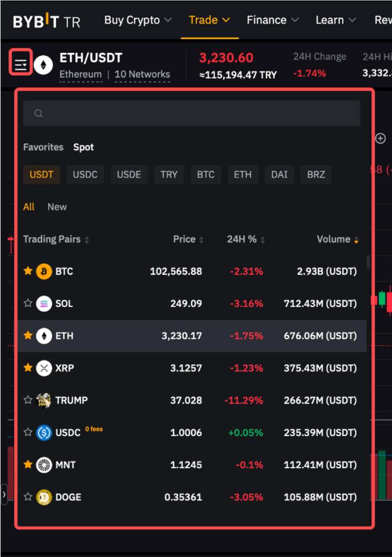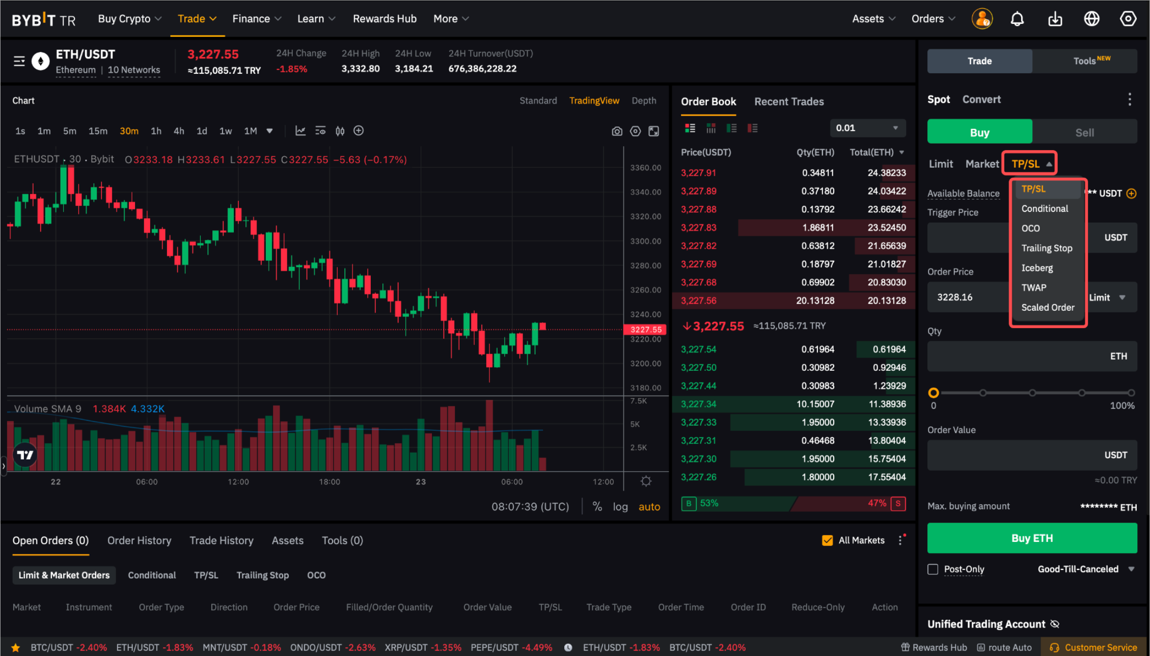 Bybit TR Spot Trading provides you with various order types. To learn more about the differences between each order type, please refer to Types of Orders Available on Bybit TR.