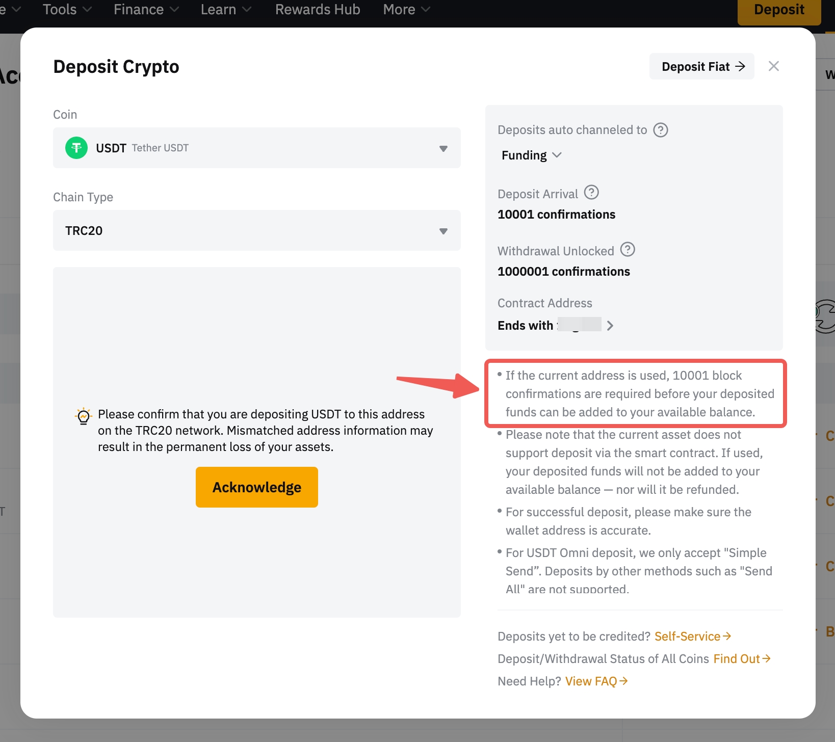 Please note that deposits in different coins with different chains may have different deposit limits.