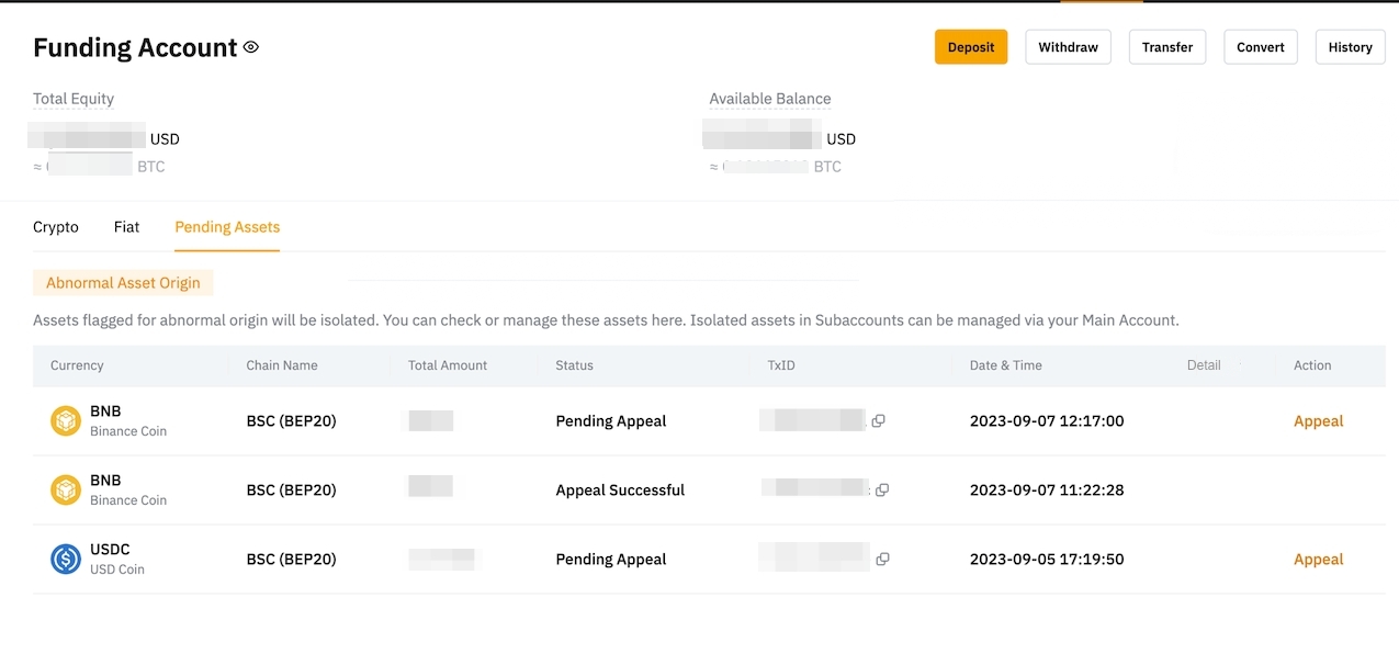 | Appeal Successful | The appeal is successful, you can proceed to make a withdrawal on the Assets Page. |