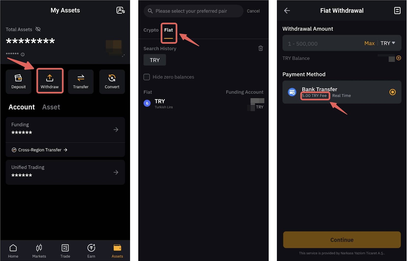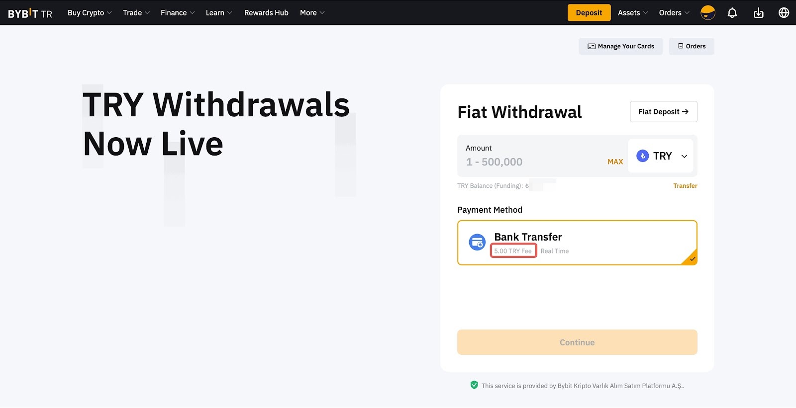 There may be fees associated with your fiat withdrawal depending on the fiat currency and payment method selected. You can find the relevant fee rates applied for each fiat currency and payment method by going to the Fiat withdrawal page and selecting the fiat currency of your choice.