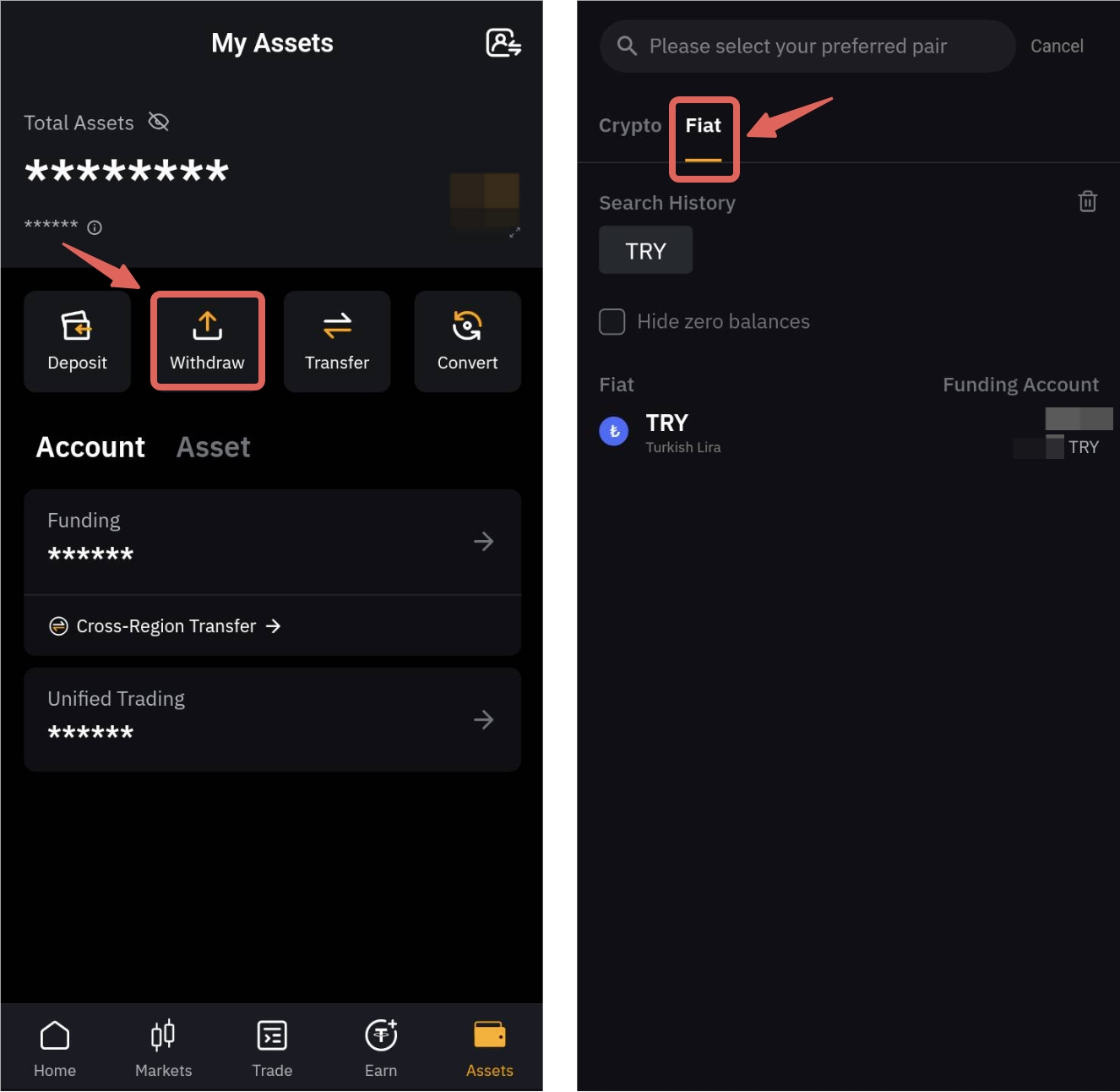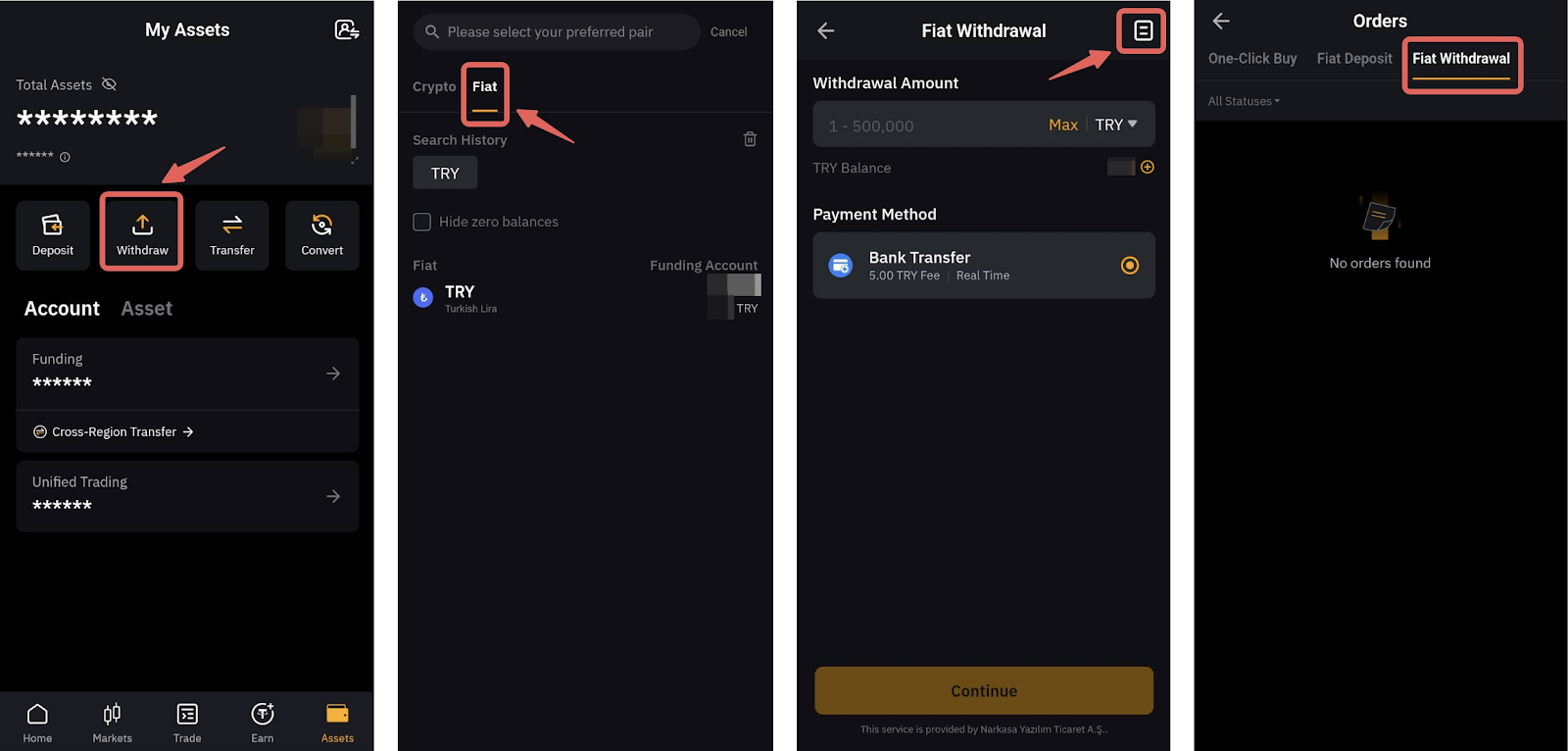 On the App, please go to the Assets tab and tap on Withdraw, then switch to Fiat → select any of the fiat → tap on the page icon.