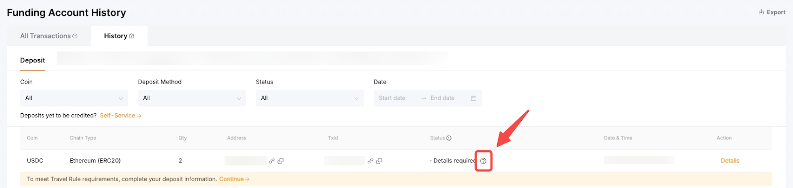 - You may click the Help icon to view the transaction status details.