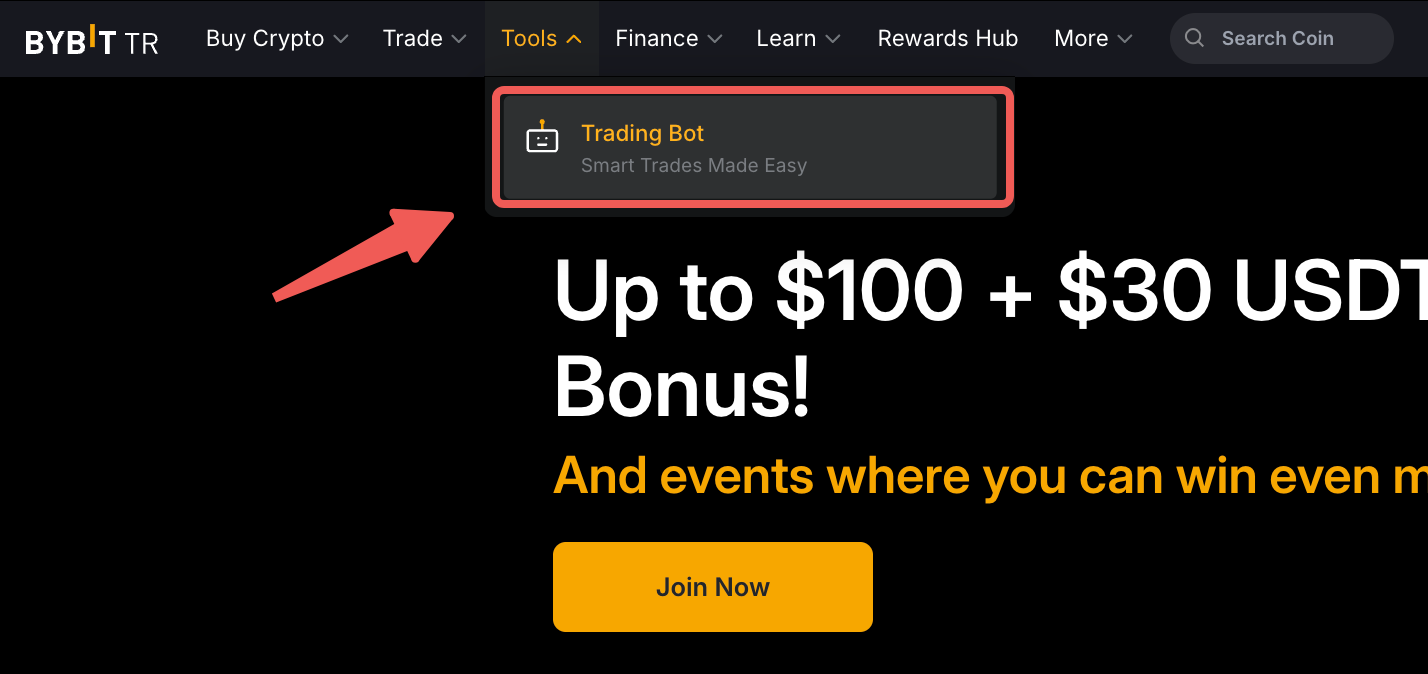 Step 1: Please click on Tools → Trading Bot in the navigation bar to enter the Bybit TR Trading Bot page.
