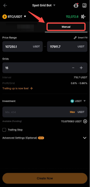 — When the market price reaches the entry price, the grid bot will buy at the optimal price to ensure that the Spot Grid Bot is executed correctly.