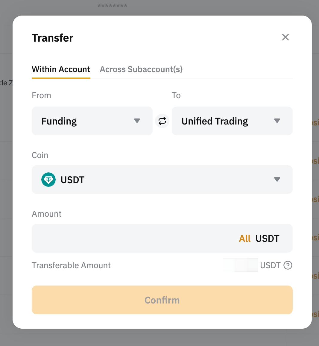 Step 2: Make sure the selected accounts and fiat currency are correct, then enter the amount to be transferred. Next, click on Confirm.