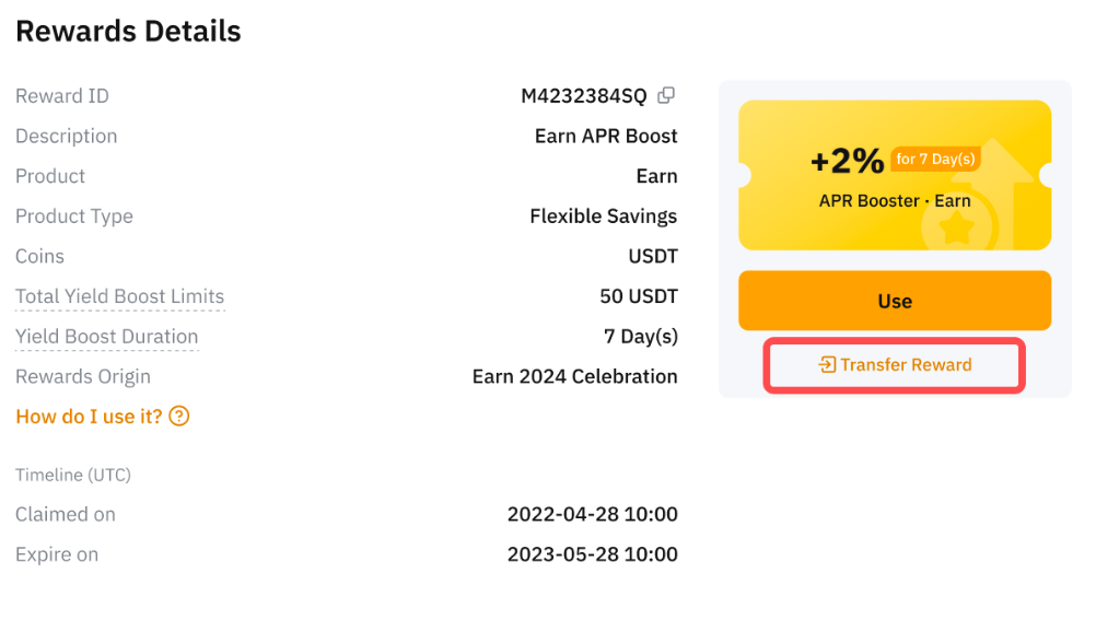 Step 2: Select the reward to view its details and whether it supports transfers. You can click on Transfer Reward if it is transferable.