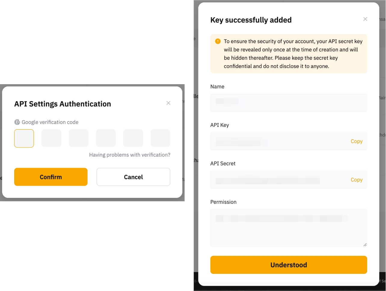 Step 3: The following pop-out window will appear. Please configure your API key according to your trading needs.