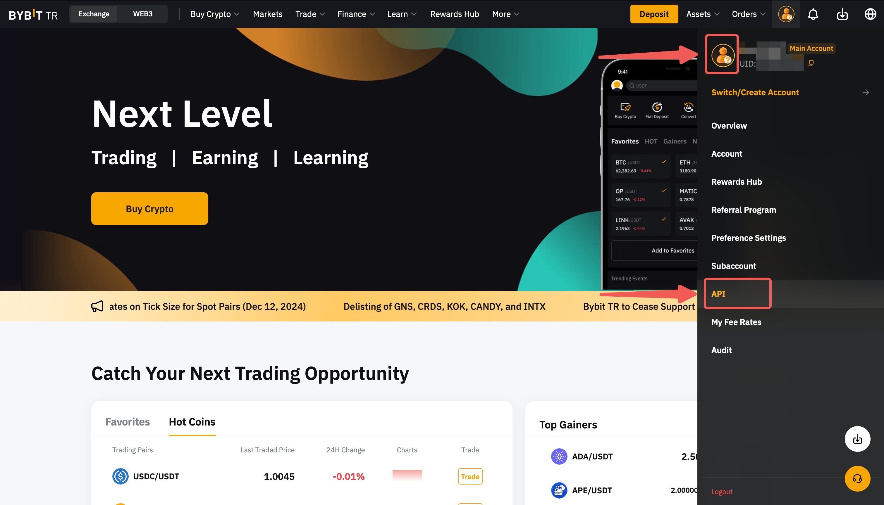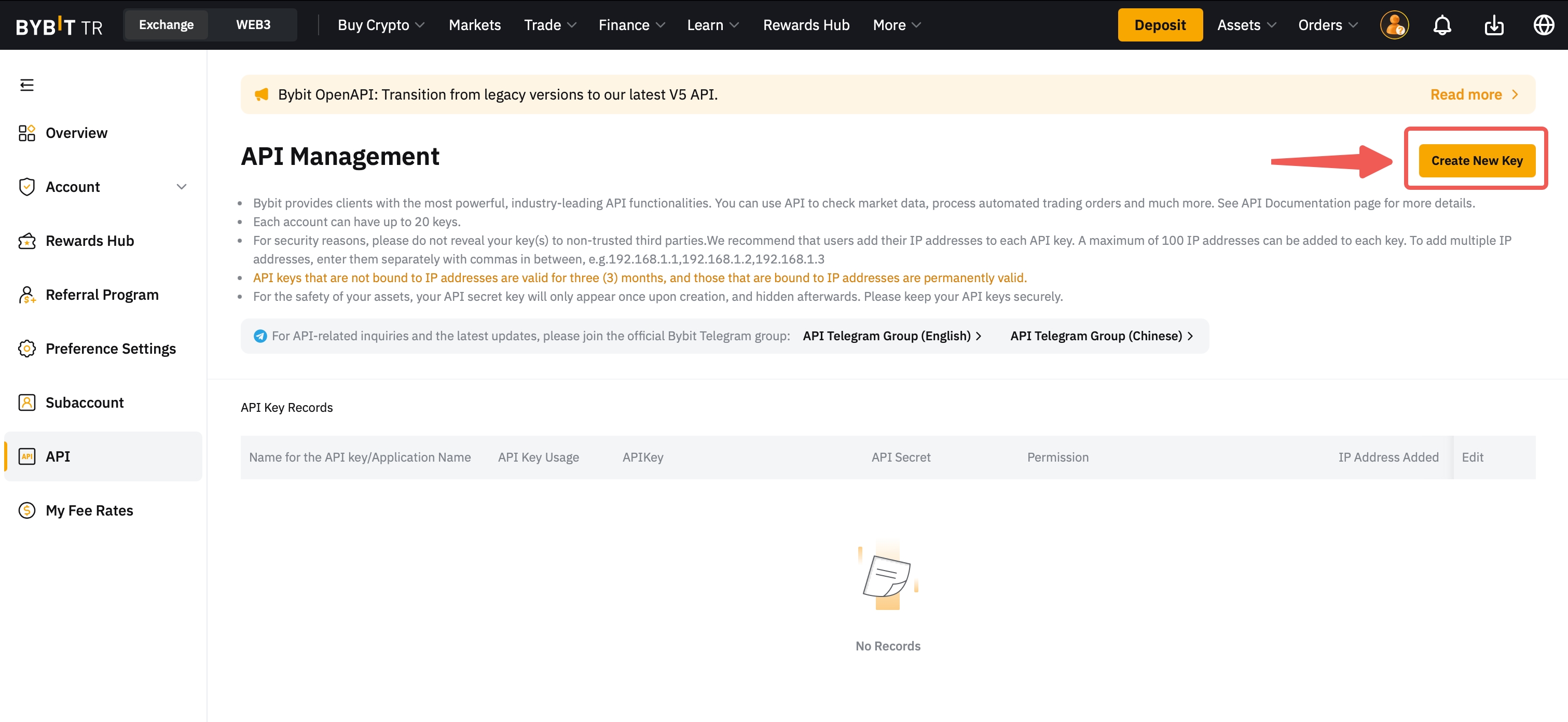 To create your API key on Bybit TR: