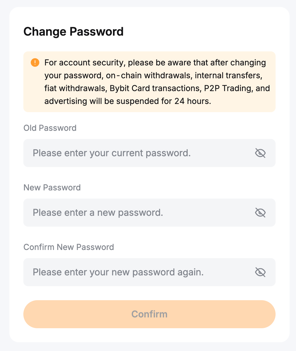 Step 2: Enter your old password and your new password, then click Confirm. As a security measure, enter your Google verification code to complete the password reset.
