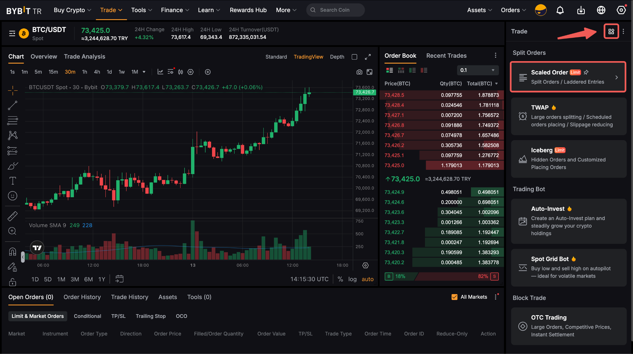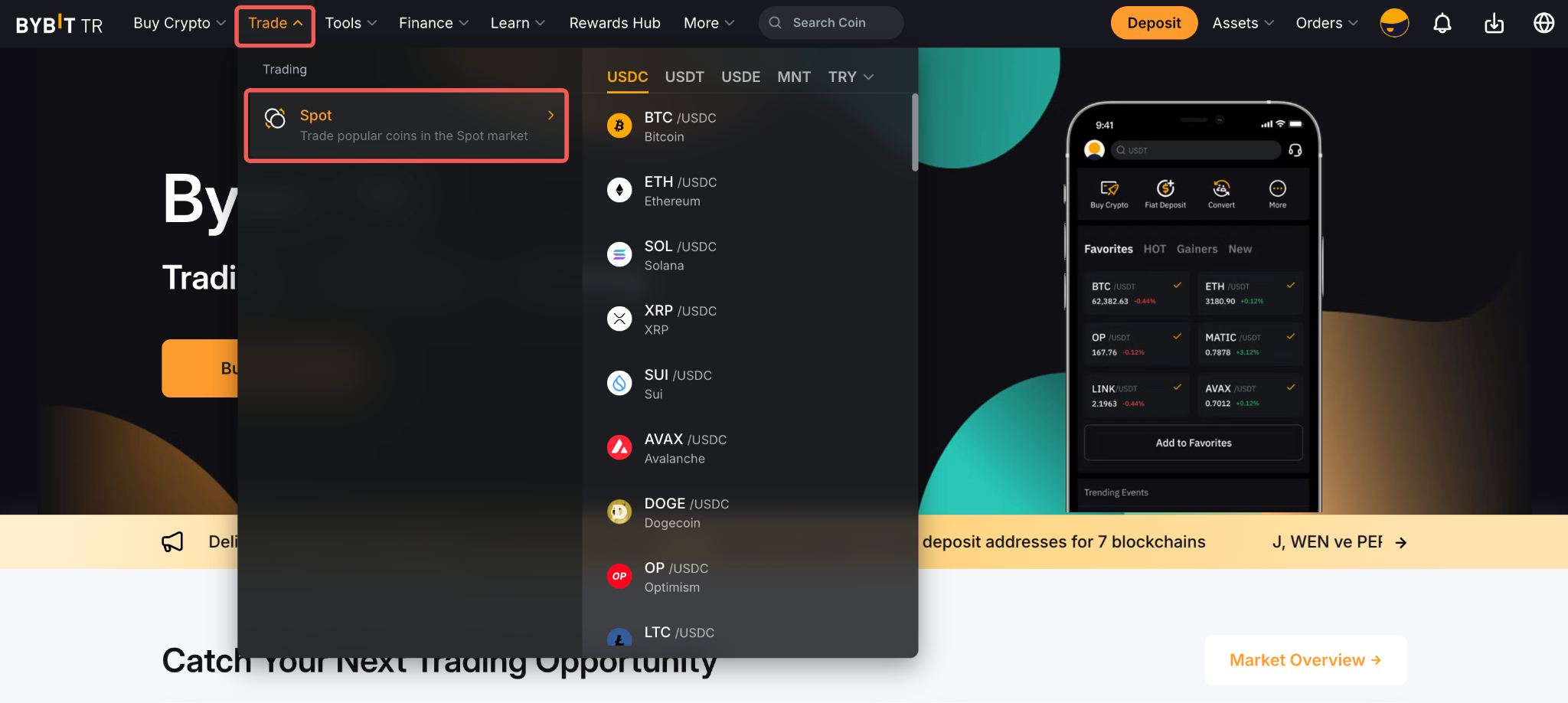 Step 1: Log into your Bybit TR account and visit Spot trading. Then, select the contract you wish to trade.
