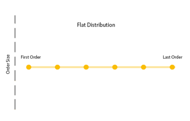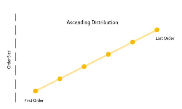 - You may choose to distribute your order evenly (Evenly Split), or with geometric increments in either direction (Increasing or Decreasing).