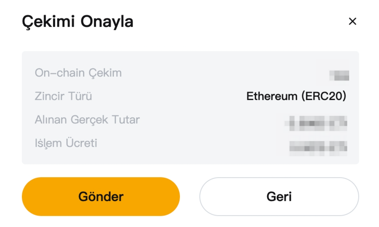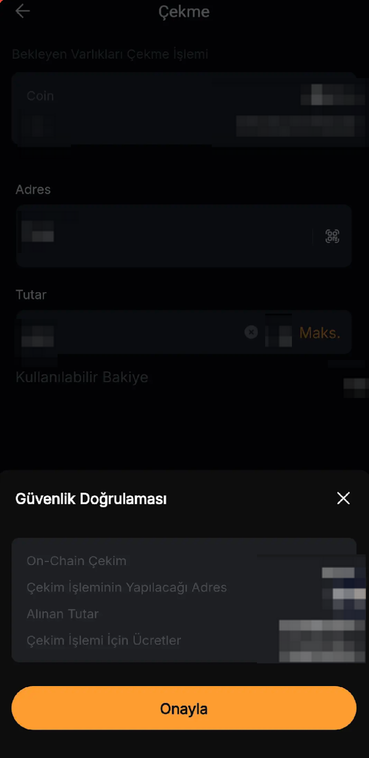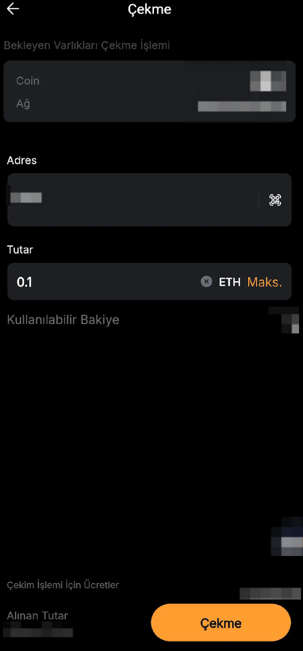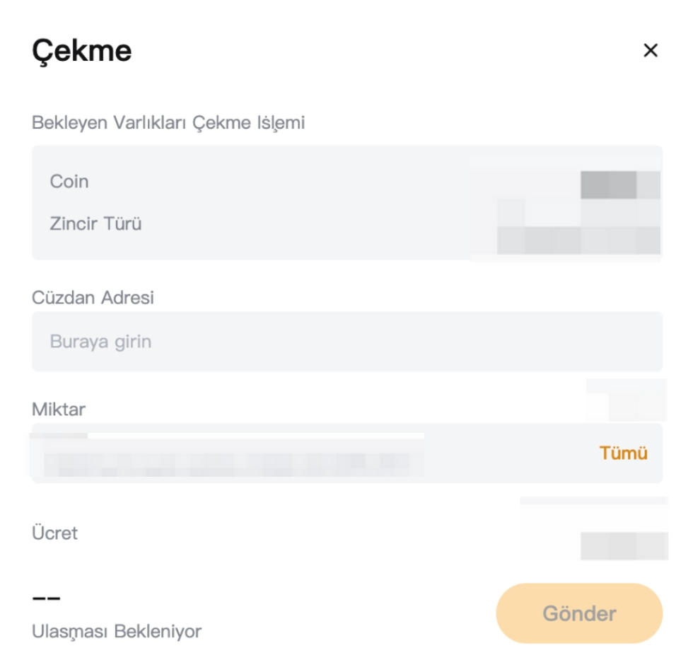 Her bir kripto ve zincir için standart para çekme ücreti tutarı bu sayfada bulunabilir. İşlem ücretine ilişkin tutar, her işlem için para çekme ücreti ve seçilen zincir koşullarına göre hesaplanacaktır.