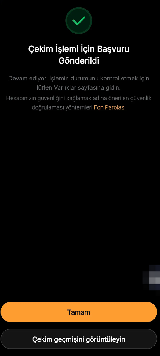 Tebrikler! Para çekme talebinizi başarıyla gönderdiniz!