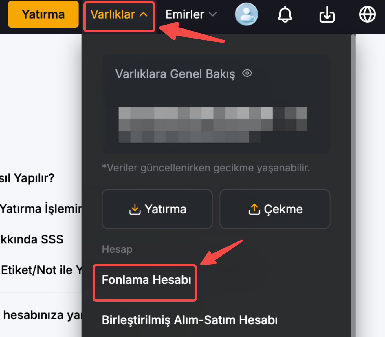 Bybit TR web sitesinde, hala incelenmekte olan varlıkları Fonlama Hesabı sayfanızın Bekleyen Varlıklar bölümünde bulabilirsiniz.