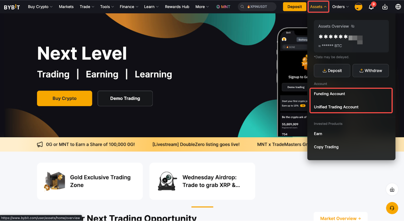 Adım 1: Sayfaya girmek için Varlıklar → Fonlama Hesabı veya Birleştirilmiş Alım Satım Hesabı öğesine tıklayın.