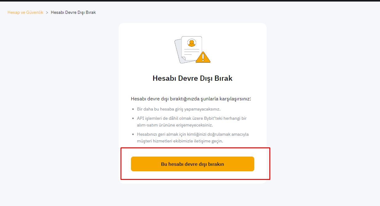 8. Hesabınızda anormal işlemler gerçekleştirildiğinden şüphelendiğinizde hesabınızı devre dışı bırakın
