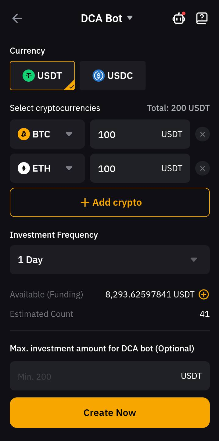 Adım 2: DCA Botu Oluşturma sayfasına gitmek için DCA Botu'na dokunun.