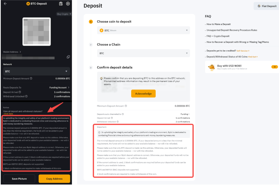 — Her coinin minimum yatırma miktarı veya yatırma yöntemi (Akıllı Sözleşme) gibi farklı yatırma gereklilikleri vardır. Yatırma işlemi yapmadan önce lütfen Yatırma sayfasındaki önemli notları okuduğunuzdan emin olun.