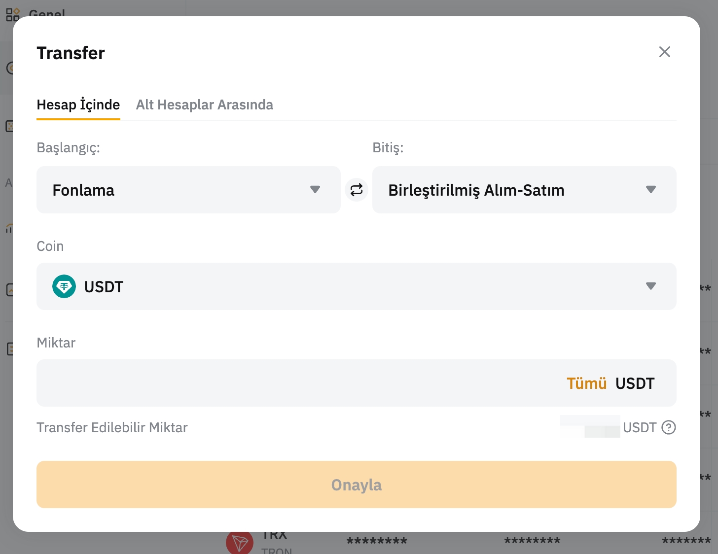 Yatırdığınız itibari para miktarı Fonlama Hesabınıza aktarılır. Emir vermeden önce lütfen itibari parayı Fonlama Hesabınızdan Spot Hesabınıza transfer edin.