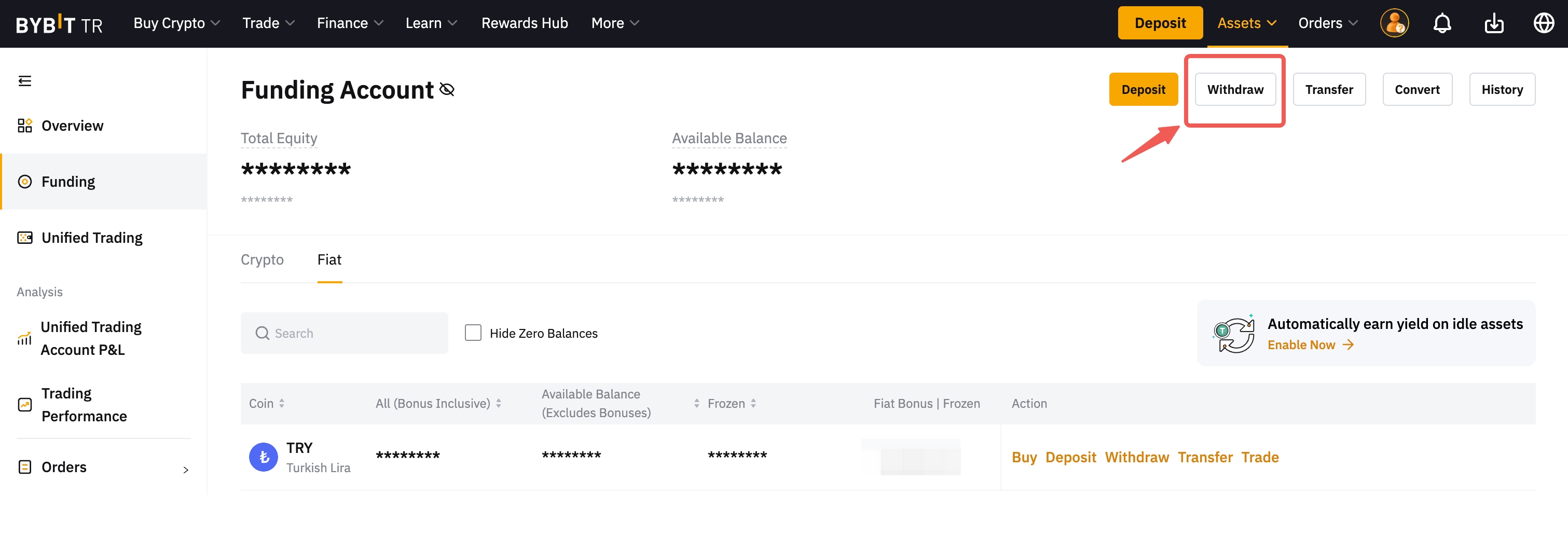 Bybit TR, itibari para bakiyenizle anında işlem yapmanızı kolaylaştıracak bir dizi itibari para yatırma seçeneği sunmaktadır. Fon yatırma adımları farklı itibari para birimleri arasında biraz farklılık gösterir. Ayrıntılı bilgi için lütfen bu sayfayı ziyaret edin.