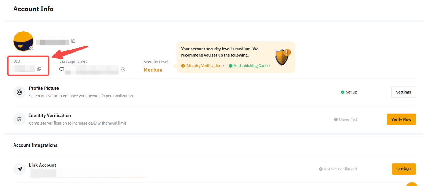 Yöntem 1: Hesabınızın ayarlar sayfasına girmek için yukarıdaki bağlantıya tıklayın. İstenmesi durumunda giriş yapın. Giriş yaptıktan sonra UID’nizi görebileceksiniz.