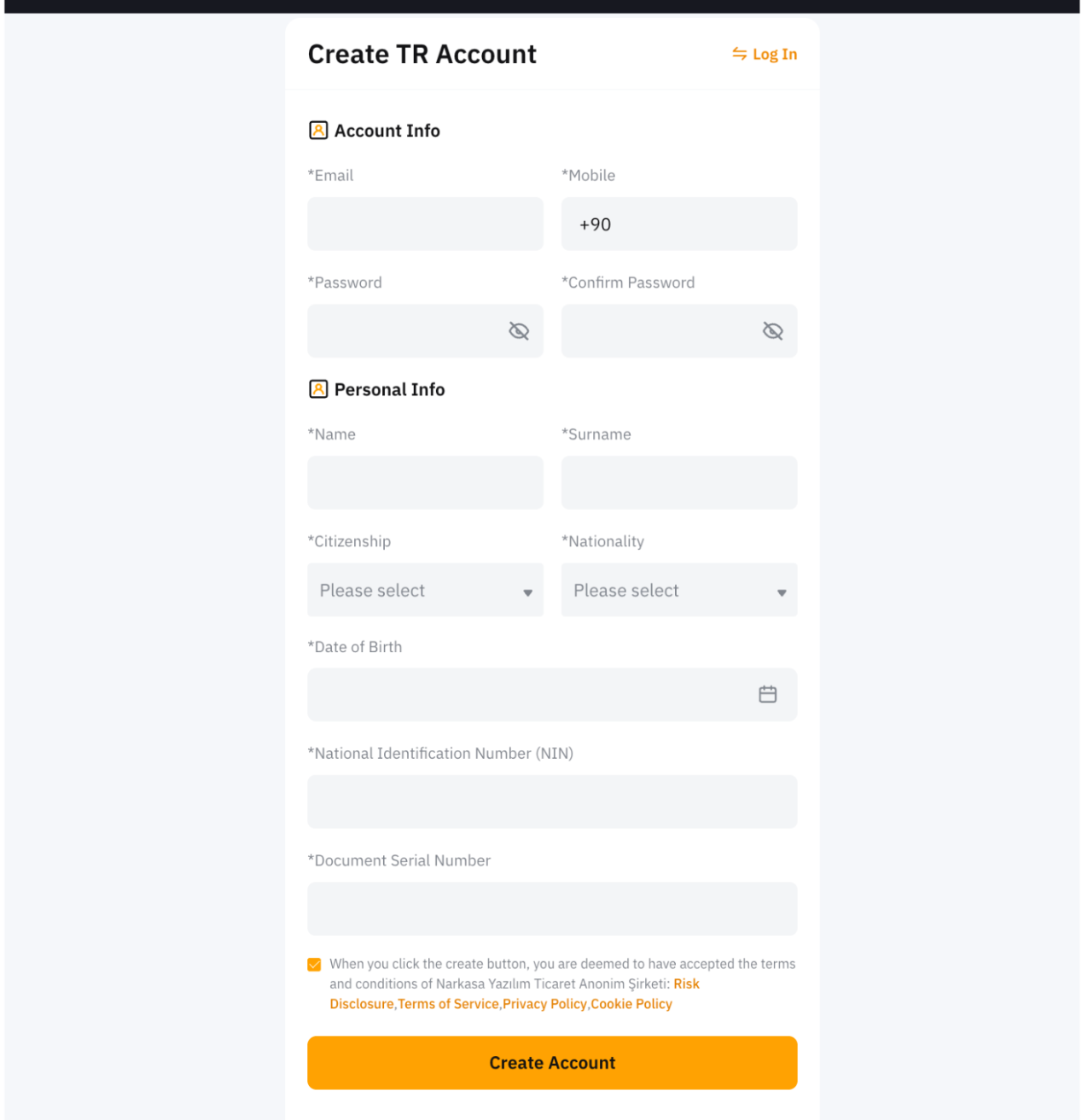 2. Adım: Hesap Bilgilerinizi ve Kişisel Bilgilerinizi girin. Hüküm ve Koşulları kabul edin ve Hesap Oluştur seçeneğine tıklayın.