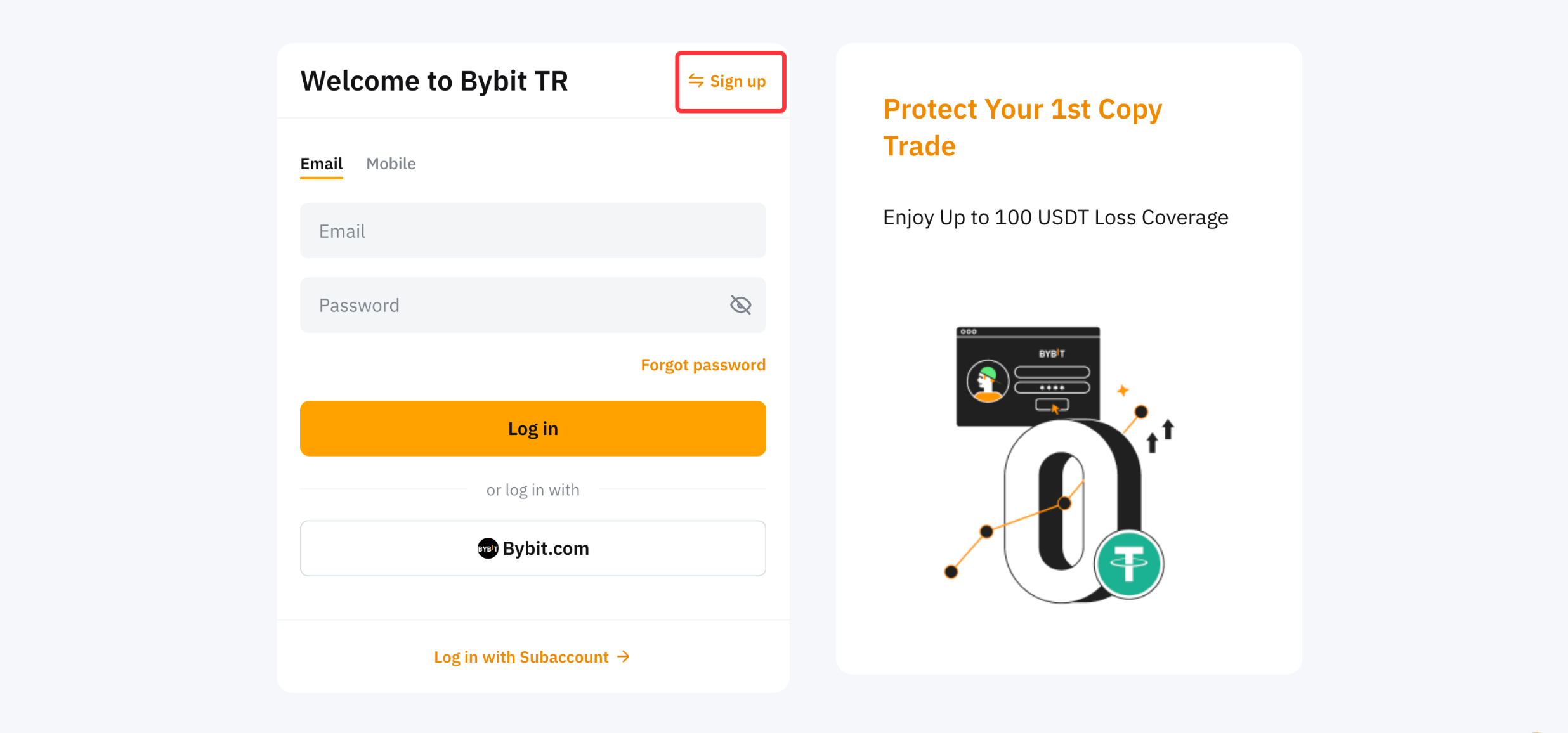 1. Adım: Bybit TR web sitesini ziyaret edin ve Kaydolun seçeneğine tıklayın.