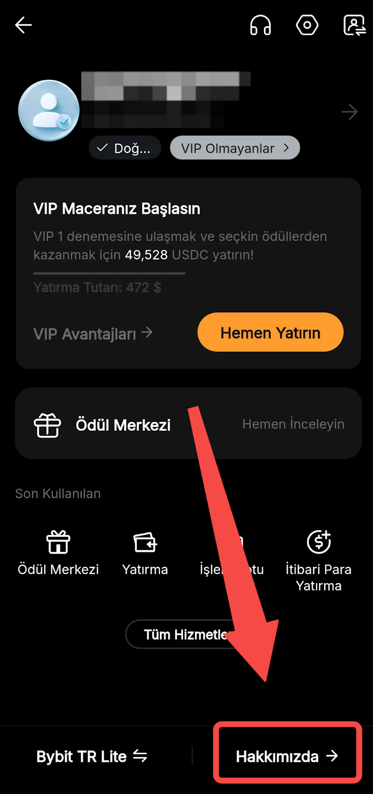 Adım 3: Hakkımızda sayfasında, ekranın üst kısmına yakın olan Bybit TR logosuna çift dokunun. Bu, sayfanın altında gizli bir “Log Kaydı Gönder” seçeneğini açacaktır.